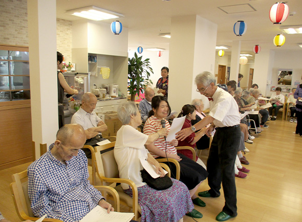 お誕生日会をはじめ、施設内では思考を凝らした様々なレクリエーションを開催。また、お花見や遠足、ショッピングセンターへのお買い物ツアーなどの外出企画も人気です。多様なイベントを通して、日々の楽しみはもちろん、ご利用者様同士の親睦を深め、より楽しい生活を送れるようサポートしていきます。