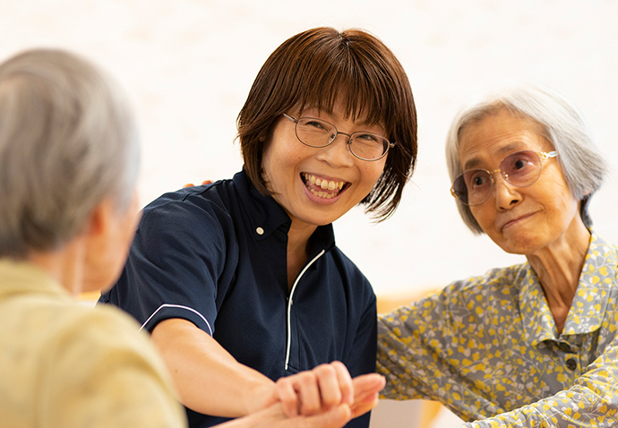 自立から要支援、要介護の方まで様々なお客様が暮らしている中で、「健康管理」と「体調変化の早期発見」に携わります。